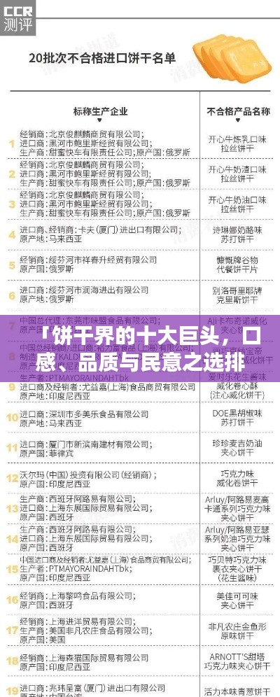 饼干作为日常生活中不可或缺的食品之一,因其口感酥脆、口味多样而备受消费者喜爱,随着市场的日益发展,品牌众多、种类繁多的饼干让人眼花缭乱,哪些饼干在口感、品质等方面脱颖而出,成为消费者的首选呢?我们将为您介绍饼干排名前十名,让您了解这些备受追捧的饼干品牌。