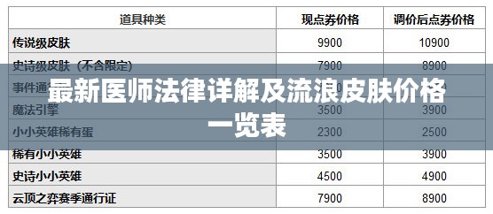 随着医疗行业的迅速发展,对医师行为规范的法律法规也在不断完善,本文将对最新医师法律进行详细介绍,并引入“流浪皮肤价格表”这一关键词,探讨其在医疗领域的应用及意义。