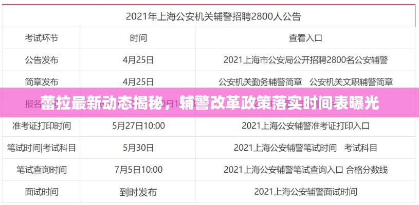 随着社会的不断发展和进步,公安工作的重要性日益凸显,为了提升警务效率,优化警力结构,我国近年来对警务系统进行了多项改革,辅警改革作为警务改革的重要组成部分,备受关注,蕾拉作为广大辅警中的一员,其所在地区的辅警改革政策落实时间,对于蕾拉及广大辅警来说具有重要意义,本文将围绕“蕾拉最新与辅警改革政策落实时间”这一主题展开讨论。