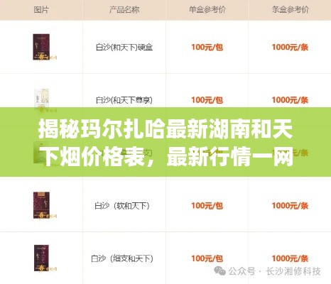 随着烟草市场的繁荣与发展,各地的烟草品牌纷纷推陈出新,其中湖南的烟草品牌更是受到广泛关注,玛尔扎哈作为湖南烟草市场的一颗璀璨明珠,其旗下的和天下系列烟草产品备受追捧,本文将为您详细介绍玛尔扎哈最新湖南和天下烟价格表,带您领略这一品牌烟草的魅力。