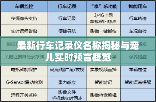 随着科技的不断发展,行车记录仪作为现代驾驶过程中不可或缺的设备,其功能和性能也在不断更新换代,本文将重点介绍最新行车记录仪的名称及其特点,并结合宠儿实时预言的概念,探讨未来行车记录仪的发展趋势。