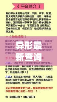异形,通常指的是形状、特征与众不同的物品,在珠宝领域,异形珠宝往往因为其独特的设计和工艺受到追捧,最新查询则意味着近期或者即时关于异形的查询信息,异形最新查询通常指的是近期内人们关注、查询的异形物品的相关信息。