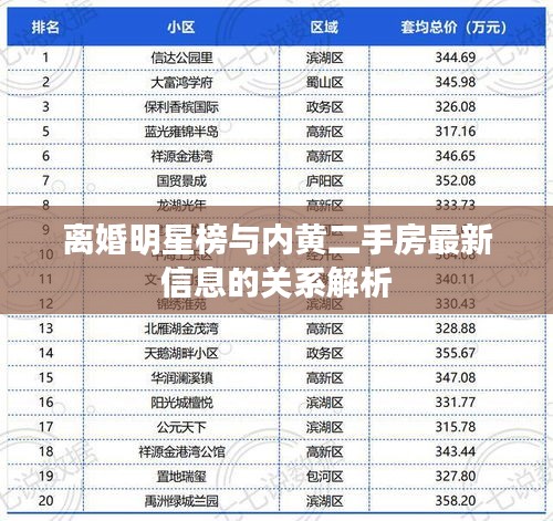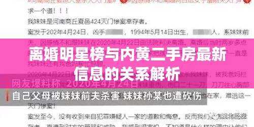 对于“离婚明星榜”与“内黄二手房最新信息”这两个看似不相关的关键词,实际上在特定的语境下并不存在直接的关联性,但从宽泛的社会心理和市场反应角度来看,可以分析出以下关系: