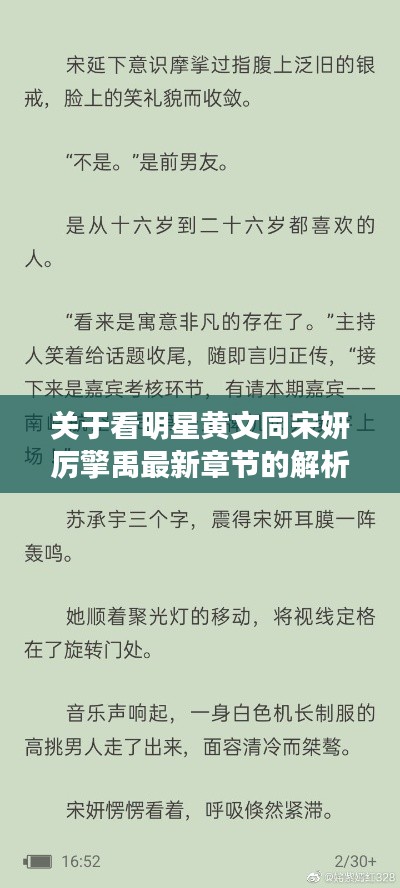在当今信息爆炸的时代,网络文学和娱乐新闻成为人们生活中不可或缺的一部分,看明星黄文同宋妍厉擎禹最新章节”,这一表述显然涉及到了网络文学或者娱乐新闻中关于特定人物(黄文同、宋妍厉擎禹)的最新动态或故事发展,对此进行解析,首先需要明确这一主题的真实含义。