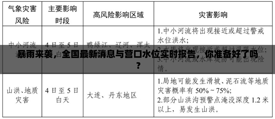 暴雨来袭,全国最新消息与营口水位实时报告,你准备好了吗?