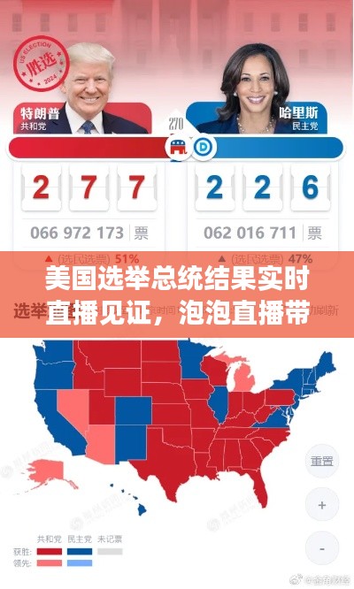 在这个充满竞争与期待的时刻,让我们通过泡泡实时直播,共同见证美国选举总统的最新结果,共同期待未来的美好发展。