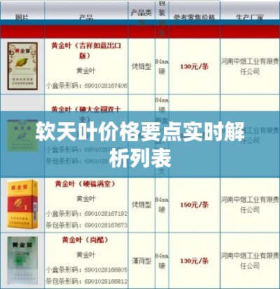 软天叶作为一种优质烟草产品,其价格受到品牌附加值、原材料成本、生产成本、市场供需状况等多种因素的影响,消费者在购买时,应关注价格动态、辨别产品真伪,并理性对待烟草消费,本文旨在为消费者提供关于软天叶价格的实时说明,以便更好地了解其价值。