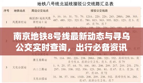 作为市民,时刻关注出行资讯,才能更好地安排自己的出行计划,南京地铁8号线的最新消息和寻乌公交的实时查询,都是出行必备的资讯。