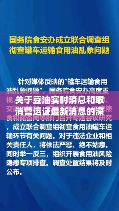 豆油实时消息和取消营运证最新消息是当前的热点话题,对于行业、企业和公众都具有重要的影响,本文旨在提供全面的解读和建议,帮助公众更好地了解和应对这些变化。