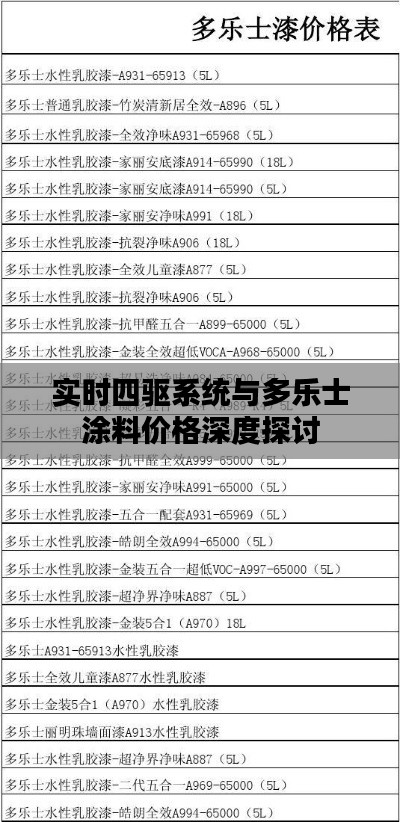 在汽车技术领域,实时四驱系统已成为现代车辆性能的重要体现,在建筑领域,涂料作为重要的建筑材料,其品牌、质量与价格也是行业内外关注的焦点,本文将围绕实时四驱系统的概念与特点,以及多乐士涂料的价格进行阐述,旨在为读者提供一个专业、全面的视角。