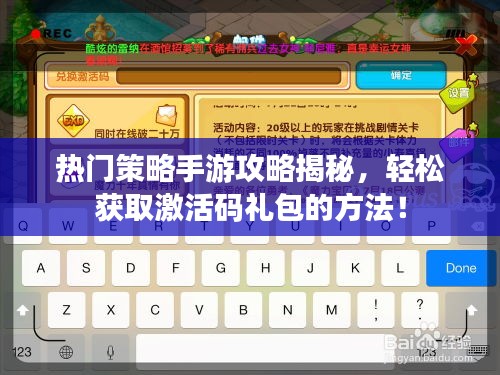 亲爱的手游爱好者们,今天我们将一起探讨当下最热门的策略手游,以及大家最关心的如何轻松获取游戏激活码礼包的问题!让我们开启这场充满智慧与勇气的冒险之旅吧!