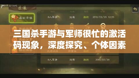 作为一名社会观察者,三国杀手游”与“军师很忙激活码”成为不少玩家关注的焦点,这不仅是一场游戏内的热潮,更是社会现象的一个缩影,本文将从本质探究、典型表现、个人层面成因及可能的破局思路四个层次,对这一现象进行深度剖析。