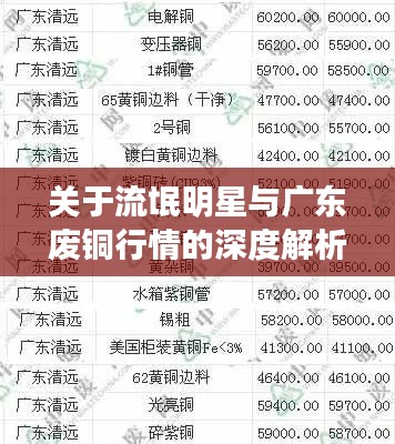 本文全面解析了流氓明星与广东废铜行情的内涵与联系,探讨了两者之间的潜在关系,也提出了具体的落实建议和防范措施,希望通过本文的解析与警示,能够提高公众对这两个领域的认识,共同维护良好的市场秩序和社会环境。