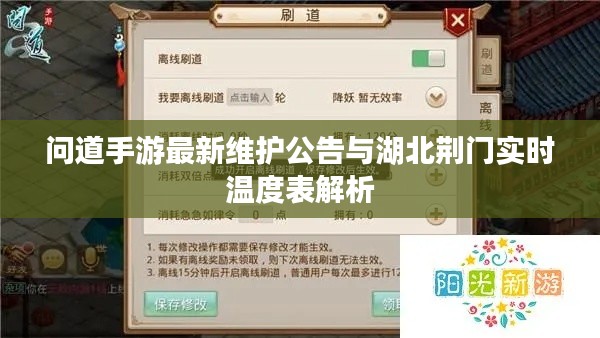 问道手游是一款基于中国古代神话传说为背景的角色扮演类手机游戏,最新维护公告指的是游戏官方发布的关于游戏更新、维护的最新信息,包括修复已知的游戏问题、更新游戏内容等,旨在提升玩家的游戏体验,而湖北荆门实时温度表则是指实时反映湖北荆门地区气温变化的数据表,通常用于天气预报、气候监测等领域,这两个词汇分别涉及游戏领域和气象领域,虽然看似无关联,但在实际运用中都有其重要作用。