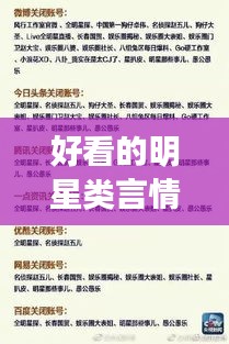 “好看的明星类言情”指的是以明星或知名人物为主角的爱情故事,通常涉及娱乐圈的背景和情节,这类故事往往融合了浪漫、情感、事业和人际关系等元素,通过戏剧化的手法展现主角们的爱情经历,好看的明星类言情作品往往具有吸引力强、情节紧凑、人物立体等特点,能够引发观众的共鸣和喜爱。