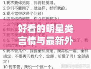 随着娱乐产业的发展,好看的明星类言情作品逐渐成为公众关注的焦点,为了创作出更具吸引力的作品,制片方需要注重明星的选择、剧情的设置和制作的质量,也要关注观众的需求和口味,通过市场调查和分析,制作出更符合观众喜好的作品,明星自身也需要通过不断提升自己的演技和综合素质,以更好地诠释角色,赢得观众的喜爱。
