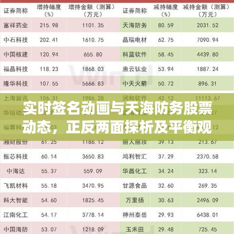 针对实时签名动画与天海防务股票的最新动态,我们需要从正反两面进行平衡考虑,对于实时签名动画而言,应该关注其技术创新与应用的同时,加强对其安全性、法律问题的研究,确保其在合法合规的前提下发展,对于天海防务股票而言,投资者应关注公司的业绩预期和行业发展前景,同时关注股市波动、行业竞争压力等风险因素,做出理性的投资决策。