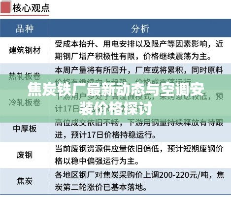 焦炭铁厂的最新实时消息与安装空调价格虽然看似不同领域的话题,但它们在实际经济生活中却有着微妙的关联,通过了解这些关联,我们可以更好地把握市场动态,为未来的生活和工作做出更明智的决策。