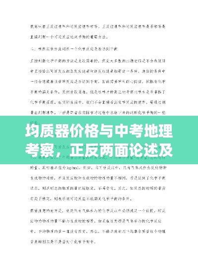 随着科技进步和地理教育信息化的不断推进,中考实时地理考察逐渐成为评估学生综合素质的重要手段,在这一过程中,均质器作为关键设备,其价格问题引发了广泛关注,本文将围绕“2022年中考实时地理中的均质器价格”这一主题,从正反两个方面进行阐述,并试图给出平衡的观点,以期为相关决策提供客观参考。